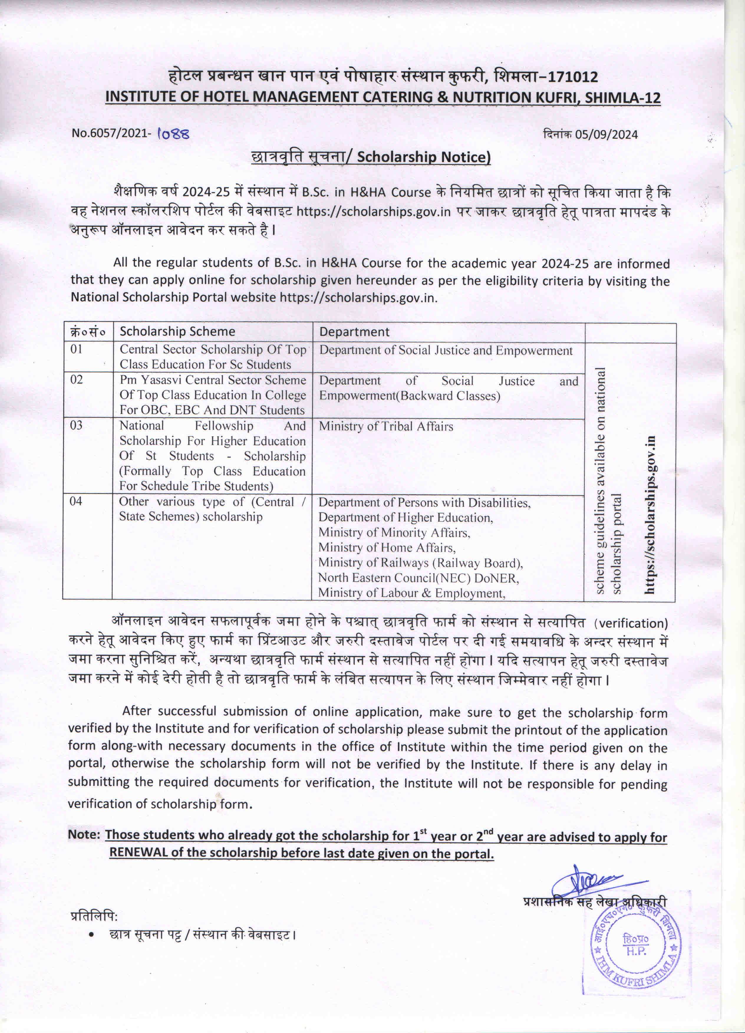 Scholarship Notice (A.Y 2024-25)